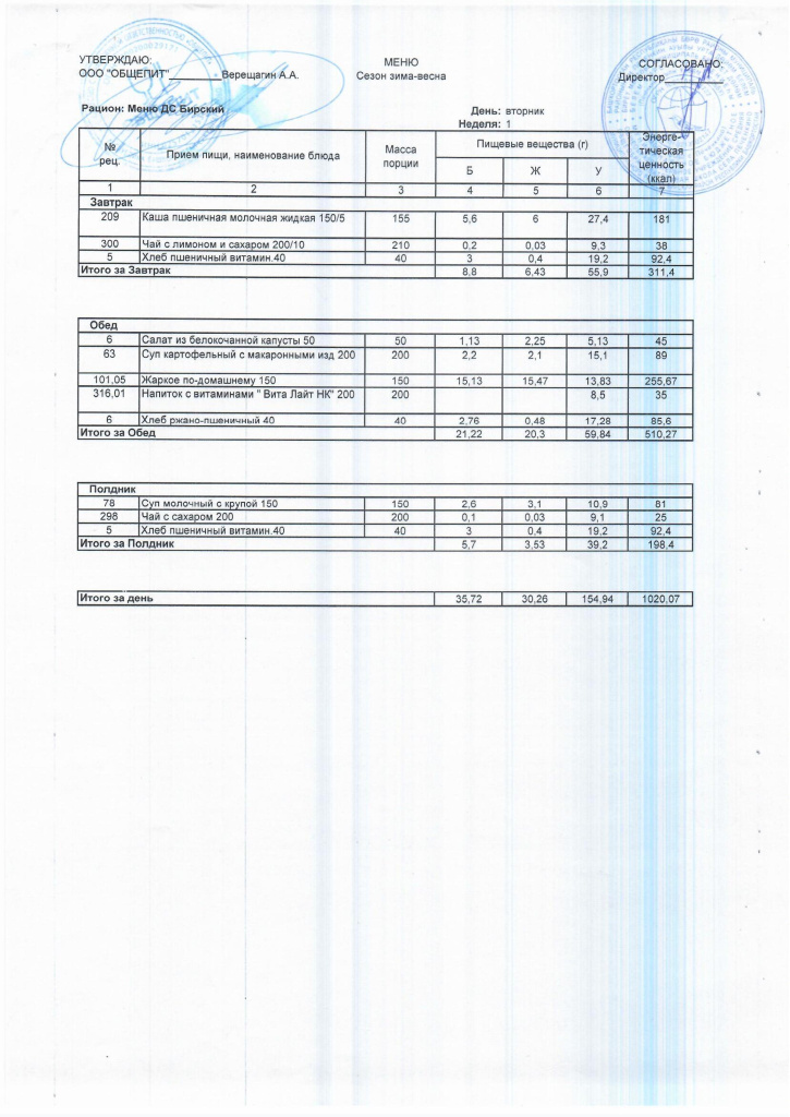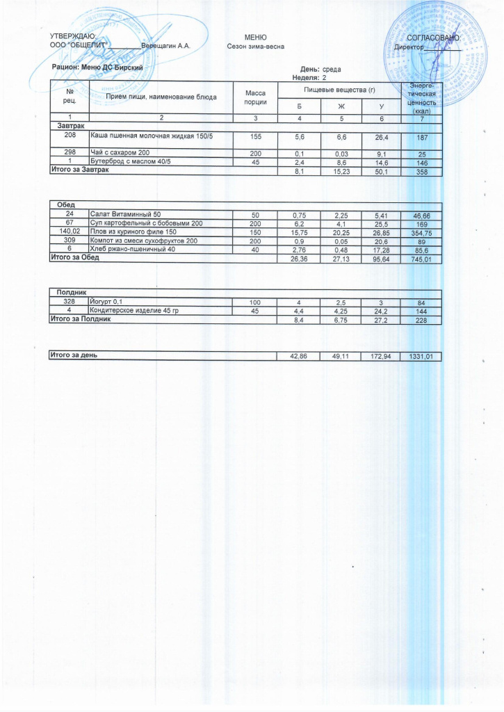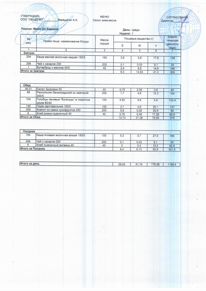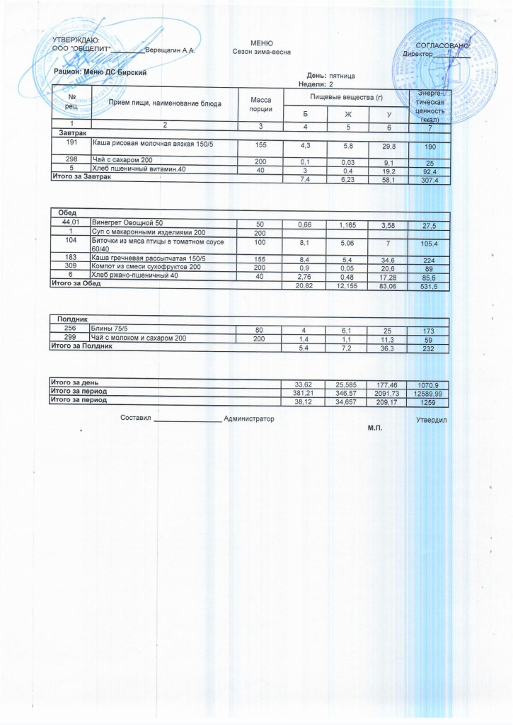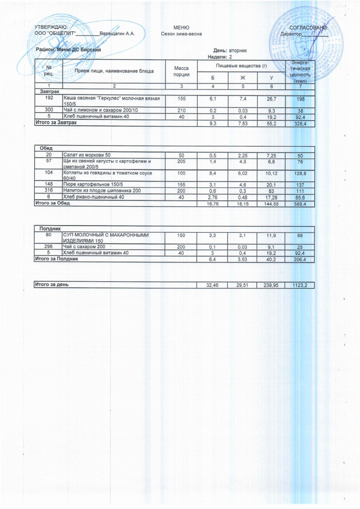 Ежедневное меню